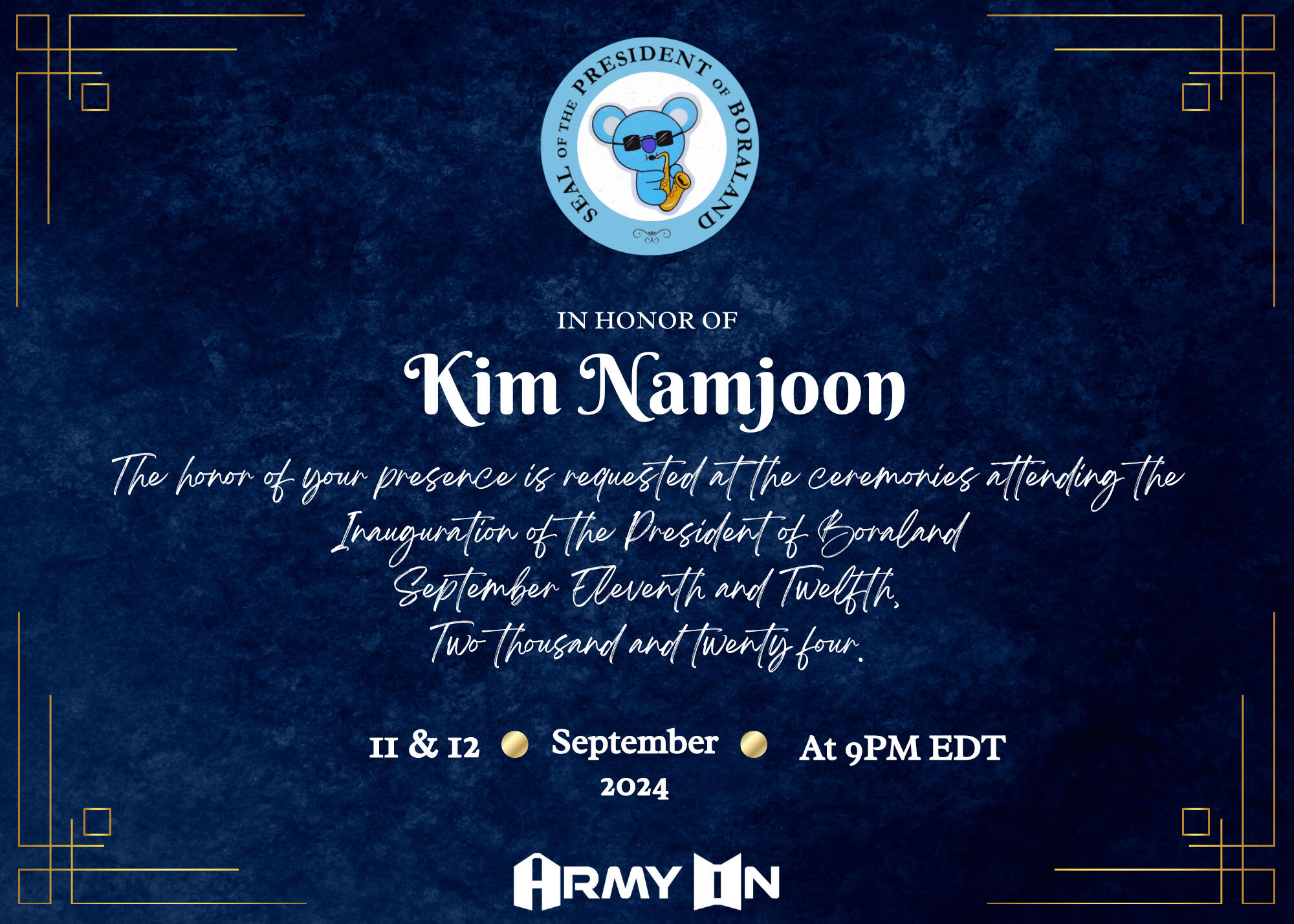 | ARMY ON - BOOST PARTY #1 (All platforms) | 9/10/2023 | All Day |